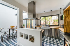 (2) commentiCiao, terrei il pavimento, mentre scusa le piastrelle di rivestimento verrebbero tolte? Vedendo anche gli altri pavimenti che comunque terrei visto la particolarità, io metterei una cucina molto pulita, lineare e giocherei sui toni del bianco e del nero; magari basi bianche mentre piano in stone nero opaco e pensili scuri o bianchi; terrei comunque una linea moderna anche senza maniglie o con maniglie come nella foto; I pavimenti fanno già da protagonisti e se vuoi mantenere un filo conduttore in tutta la casa, mi sembra che questa estetica si possa ripetere anche negli altri ambienti introducendo dei toni di colore ripresi di colta in volta dal pavimento del locale.... mostra di piùScelta rivestimento cucina