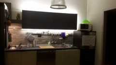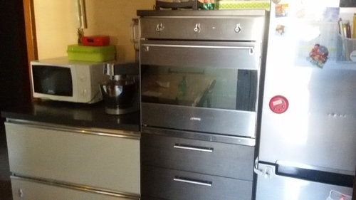 (14) commentiBuonasera Luigi, io penso che cambiando gli elettrodomestici (frigorifero compreso) potrebbe già cambiare l'immagine della cucina. Potrebbe poi aggiungere una penisola con degli sgabelli. Il pavimento pensava di lasciarlo così? Personalmente cambierei o rivestirei quello. Vedo una parte controsoffittata nella nicchia dove curva la parete, quello forse lo toglierei perché sembra un po' vecchiotto come taglio. Potrebbe cambiarlo. Credo che oltre agli elettrodomestici cambierei il top, ma non sono neanche convinta di quelle fasce più arancioni sulle ante. Cosa sono che non riesco a vederle bene? Le consiglierei di valutare il tutto anche dopo aver fatto fare dei preventivi così capisce meglio come muoversi e come investire. Come le dicevo esistono anche pellicole che rivestono mobili con effetti mica male. Se fosse interessato potrei farle fare un preventivo senza problemi. Nei preventivi valuterei ovviamente l'aggiunta della penisola e anche una cucina nuova, così ha veramente le idee più chiare. Rimango a disposizione, Laura Noè Ndesign - Interior design... mostra di piùRinnovo cucina!