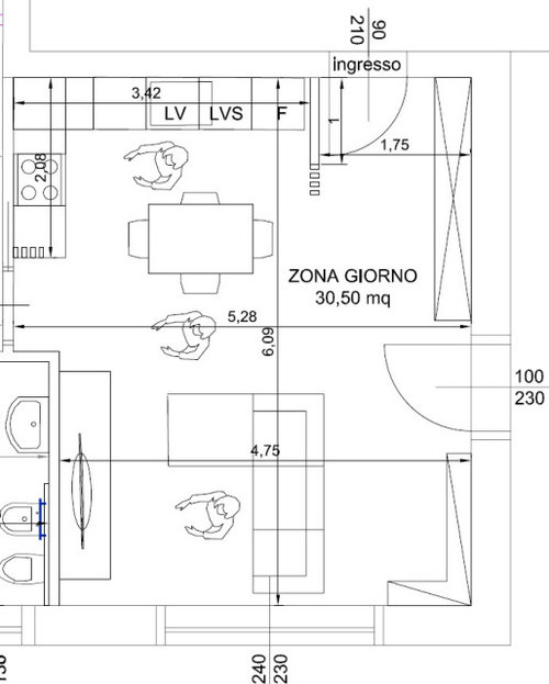 (24) commentiBuongiorno, ho riordinato un po' le idee e riassunto tutte quelle che mi avete dato, ho messo giù 2 possibili soluzioni. Quale vi convince di più? o se ce ne sono altre, ben venga :) PS: prima foto TAVOLO 150x90 e DIVANO 250x160: Seconda foto TAVOLO 170x100+ISOLA 100x100 e DIVANO 240x 165 Ho preso delle misure più o meno standard, in quanto é ancora tutto modificabile e voglio solo trovare la soluzione migliore diciamo. Tra qualche giorno avrò anche l'opinione di un architetto e vi scriverò la sua proposta. Grazie... mostra di più- il mese scorso