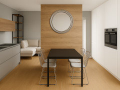 (18) commentisui due lati mi sembra sarebbe troppo per l'ambiente, rischiando di diventare opprimente e poco pratica. La parte operativa la manterresti in basso, sia per via degli attacchi sia perché è molto più comodo avere tutto vicino. In alto cosa metteresti? un po' di dispensa? piuttosto meglio una madia capiente con un bel quadro sopra! la foto che mostri riflette un ambiente più stretto del tuo ed è una tipica cucina, mentre il tuo è un open space con salotto....... mostra di piùdisposizione open space