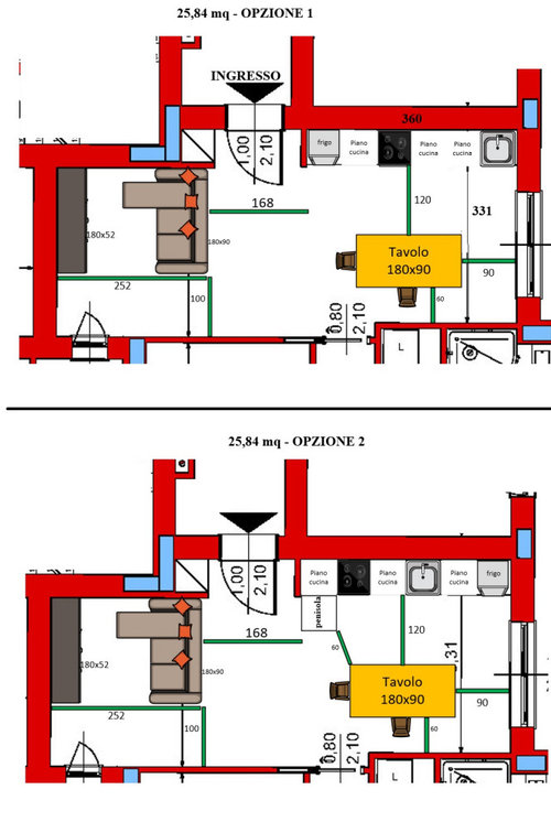 (3) commentici sarebbero una seri di elementi da prendere in considerazione abbattendo le pareti divisorie tra cui impianti e dislivelli pavimenti ecc. condivido suggerimento del collega, nn basta dire due cose qui, meglio affidarsi anche a un pro e su houzz ne trovi parecchi e moltissimi pure bravi e competenti.... mostra di piùOpen Space 25mq consiglio disposizione (cucina/tavolo/divano)