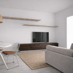 (17) commentiNon è mai facile dare un consiglio e una indicazione pertinente su come risistemare uno spazio senza un dialogo approfondito sulle necessità le aspirazioni e l'energia economica che si intende mettere in gioco, ci provo sperando di interpretare bene la situazione e le aspettative. Avendo tre ingressi in casa ( do per scontato anche dalla cucina ) andrei a chiudere la porta finestra del soggiorno lasciando un'ampia finestra con infisso bianco. Sulla parete di fondo ( dove ora c'è il mobile tv ) metto un divano angolare molto grande che gira fin sotto alla finestra che andrò a realizzare, il mobile tv lo sposto nella parete lunga e lo completo con elementi a servizio del tavolo pranzo. La tramezza della cucina può essere annullata per creare un open-space, oppure creare apertura più ampia con una doppia scorrevole in vetro, sempre che ci sia intenzione di ritrattare questo spazio, cucina compresa. Gli infissi in questo caso dovranno omologarsi, compreso il portoncino d'ingresso. La pavimentazione legno chiaro e muri bianchi la consiglio come preferenza prima di altre cose, il soffitto leggermente più scuro produce l'impressione di uno spazio allargato. La Mercury andrà in sospensione sopra il tavolo, nell'angolo in fondo una lampada a terra darà fondamento alla zona relax, il tavolino si recupera, naturalmente con un tappeto molto più grande, il divano potrà sostituirlo anche in un secondo momento se il budget non lo consente, se invece lo consente, prenda un elemento a volumi bassi con schienale alto sulla parete di fondo e schienale basso sulla finestra, tessuto molto chiaro a trama grossa e morbida e naturalmente che il tendaggio parli la stessa lingua.La colonna vicino all'ingresso e il termosifone dovranno essere integrati in un sistema di mensole/contenitore da progettare in maniera adeguata e che continueranno nella parte bassa fino al divano. Spero le sia chiaro il mio pensiero e se ha bisogno mi contatti qui... mostra di piùSalone con pavimento in cotto e parete da arredare