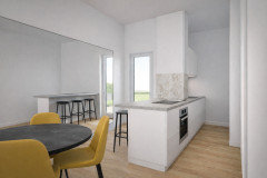 (2) commentiBuongiorno Rossana, l'impostazione abbozzata è corretta, certo che la progettazione è infinita; dipende da quali esigenze/stile di vita (le tue) deve soddisfare. Ex, l'angolo cucina è più che sufficiente per un bilocale (sono oltre 6 metri); quindi magari inserirei delle colonne metti-tutto- Sicuramente girerei il tavolo, orientandolo nell'altra direzione. O, meglio, penserei ad tavolo-consolle o un tavolino trasformabile, da appoggiare nell'angolo da te non arredato (1,90x1,40), o davanti al divano, in modo da far sembrare l'ambiente più grande. Lo spazio è piccolo, ma se progettato bene (colori, allestimento, decori) può diventare molto carino. Se deciderai di avvalerti di una consulenza, potrò esserti di grande aiuto anche on-line. Ciao!... mostra di piùDisposizione e arredamento CUCINA