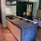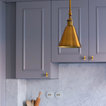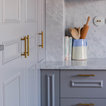 9. Pro: Laura PagliariniDove: Iseo (BS)Cosa piace.- L’armonia cromatica tra gli arredi e il paraschizzi in marmo di Carrara- Il contrasto estremamente elegante grigio-ottone- Le mensole a vista nell’angolo accanto alla finestra.