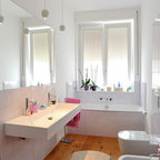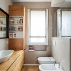 BAGNOQuanto spazio tra wc e bidetTra wc e bidet è bene lasciare lateralmente minimo 15-20 cm, misurati nel punto più largo; davanti è invece necessario lasciare almeno 60-80 cm per il passaggio.Per la lavatrice?Davanti alla lavatrice è bene lasciare uno spazio di circa 80 cm per scaricare agevolmente il bucato mentre lateralmente occorre considerare l’ingombro di apertura dell’oblò, se frontale, e tenere altri 40-50 cm a seconda dei modelli.Vorresti ricevere un aiuto professionale? Contatta un interior designer su Houzz.Hai risolto con un’idea originale problemi di spazio tra gli arredi? Mandaci una foto nei Commenti.