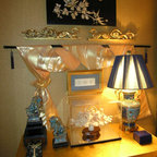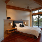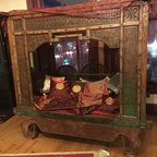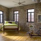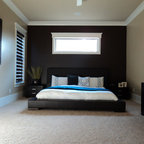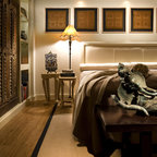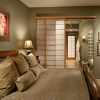 Esempio di una camera da letto etnica con pareti verdi e moquette — Houzz
