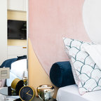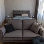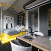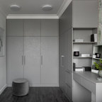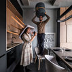 Проект апартаментов для молодой девушки из Москвы. Главной задачей проекта было создать стильное интересное помещение. Заказчица увлекается книгами и кальянами, поэтому надо было предусмотреть полки для книг и места для отдыха. А готовить не любит, и кухня должна быть максимально компактной.
