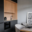 В пространстве используется минимум декора, только несколько черно-белых постеров и декоративные подушки на подоконнике. Главный элемент декора - постер с пандой, который добавляет пространству обаяния и неформальности.