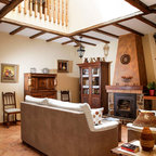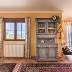 Esempio di un soggiorno country di medie dimensioni e chiuso con sala formale, pareti bianche, stufa a legna e nessuna TV — Houzz