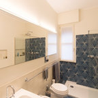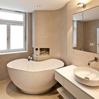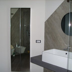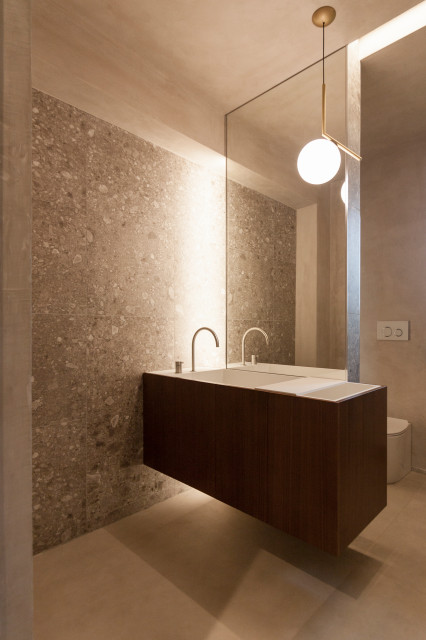 Esempio di una grande stanza da bagno minimalista con pavimento grigio — Houzz