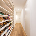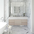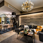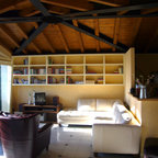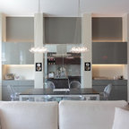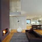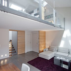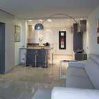 Immagine di un piccolo soggiorno contemporaneo aperto con pareti bianche, TV a parete e pavimento bianco — Houzz
