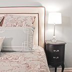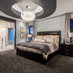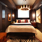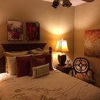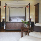 Ispirazione per una camera matrimoniale etnica di medie dimensioni con pareti bianche, moquette, nessun camino e pavimento beige — Houzz
