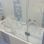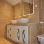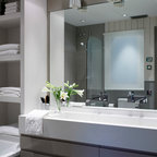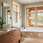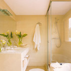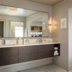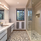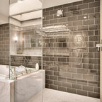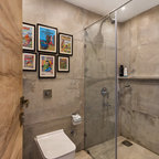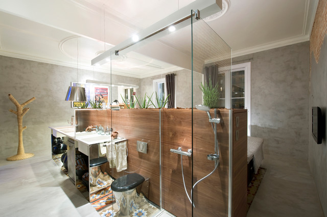 Foto di una piccola stanza da bagno con doccia chic con pareti grigie, pavimento grigio e pavimento in cemento — Houzz