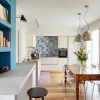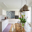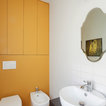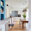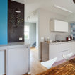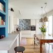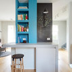 In questa casa al mare si è preferito un layout a pianta aperta che ospita senza alcuna delimitazione cucina, sala da pranzo e soggiorno. Qui i confini sono stabiliti dal colore che, dosato con sapienza e gusto, completa l’insieme e dona quel tocco di brio che vivacizza lo spazio. «La personalità esuberante dei proprietari si rispecchia nelle scelte di finiture e decorazioni, tramite l’utilizzo del colore, decorazioni e materiali che contribuiscono a creare ambienti caldi e avvolgenti».Bella l’idea del “pilastro-lavagna” dove annotare la lista della spesa o augurare il buongiorno ai propri cari. Tutte le foto del progetto