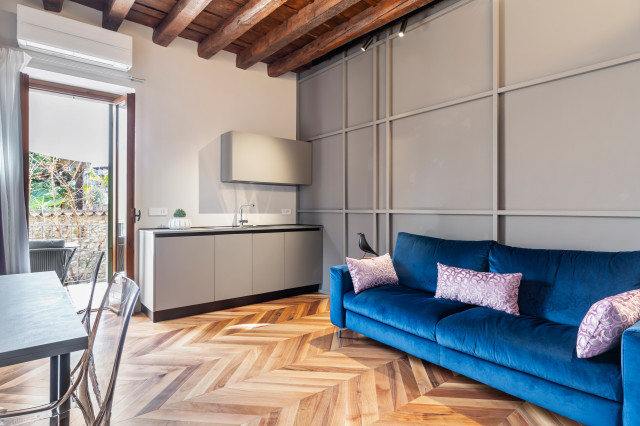 Chi ci abita: una coppiaSuperficie: 45 m²Dove: VeronaArchitetto: Carlo Cretella Budget: 50.000 €Richieste dei proprietari. «Nasce con la funzione di essere la seconda casa di una coppia in cerca di un luogo, nel centro storico di Verona, in cui rifugiarsi dalla quotidianità. Da qui la volontà di creare uno spazio sì funzionale, ma che possa far dire loro “finalmente, eccoci” tutte le volte che varcano la soglia». Obiettivo. «Ripercorrere la storicità del palazzo, re-interpretandola in chiave moderna attraverso l’accurata scelta dei materiali, dal legno a spina ungherese al seminato a graniglia. Le travi sono state mantenute e integrate a elementi che rendono questo appartamento unico e vibrante grazie ai continui rimandi tra le superfici».