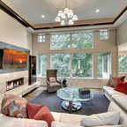 Esempio di uno studio classico con moquette e scrivania autoportante — Houzz