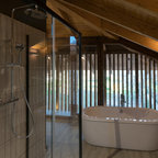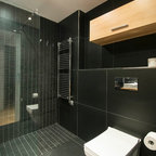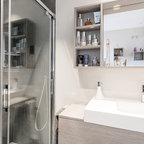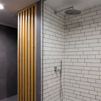 Idee per una piccola stanza da bagno con doccia minimal con piastrelle grigie e piastrelle in ceramica — Houzz