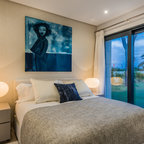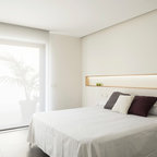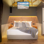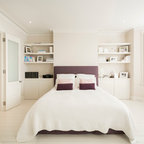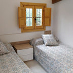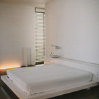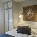 Foto di una piccola camera degli ospiti minimal con pareti verdi e parquet scuro — Houzz