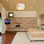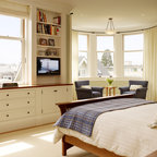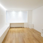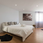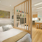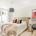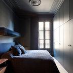Idee per una piccola camera degli ospiti minimal con pareti verdi e parquet scuro — Houzz