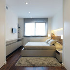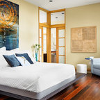 Ispirazione per una piccola camera degli ospiti design con pareti verdi e parquet scuro — Houzz