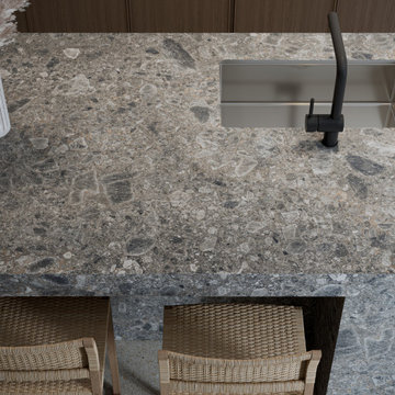 Un intervento calibrato e quasi timido rispetto all’intorno, che trova la sua qualità nell’uso dei diversi materiali con cui sono trattare le superficie. La zona giorno si proietta nel giardino, che diventa una sorta di salone a cielo aperto mentre la natura, vegetazione ed acqua penetrano all’interno in un continuo gioco di rimandi enfatizzato dalle riflessioni create dalla piscina e dalle vetrate. Se il piano terra costituisce il luogo dell’incontro privilegiato con natura e spazio esterno, il piano interrato è invece il rifugio sicuro, lontano dagli sguardi e dai rumori, dove ritirarsi durante la notte, protetto e caratterizzato da un inaspettato ampio patio sul lato est che diffonde la luce naturale in tutte gli spazi e le camere da letto.