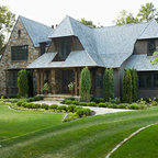cross gable with steep pitch combined with low pitch main gable