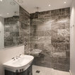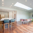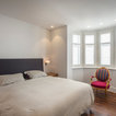 Modern, minimal space, nicely set and lit, large piece of art on that blank wall
