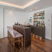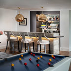 In the corner of the games/family room, a home bar.