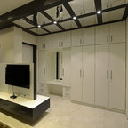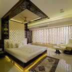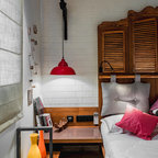 Idee per una camera da letto etnica con pareti marroni, parquet scuro e pavimento marrone — Houzz