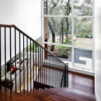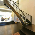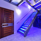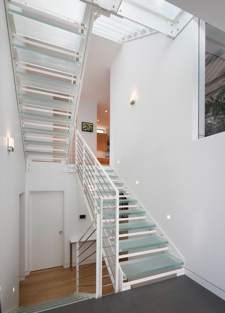 Immagine di una scala a "U" minimal con pedata in vetro e nessuna alzata — Houzz