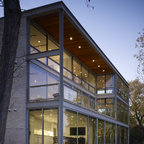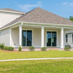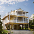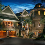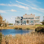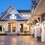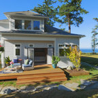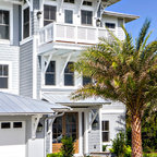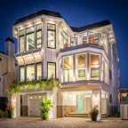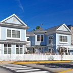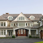 Idee per la facciata di una casa grande grigia stile marinaro a tre o più piani con rivestimento in legno e tetto a capanna — Houzz