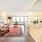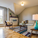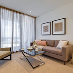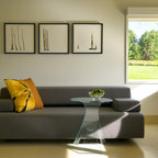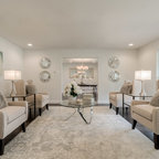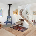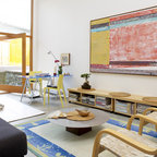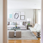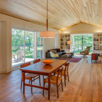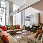 Idee per un soggiorno contemporaneo aperto con sala formale, pareti bianche e parquet chiaro — Houzz