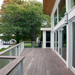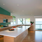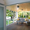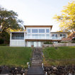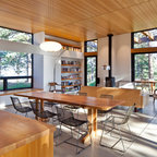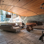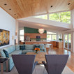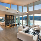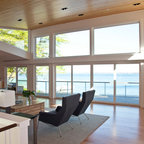 The home's modern butterfly roof leads to a spectacular wall of windows. Designed by Dan Feidt, Architect. Built by TreHus.