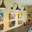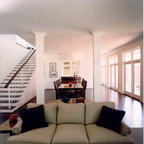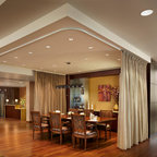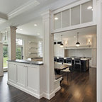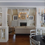 Nice windows. Also, generally the idea for divider between dining and small sitting area (except with existing craftsman buffet and cherry craftsman style columns. And taller to accommodate TV on seating area side.