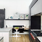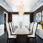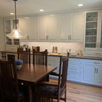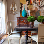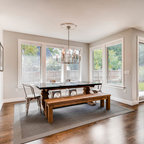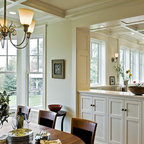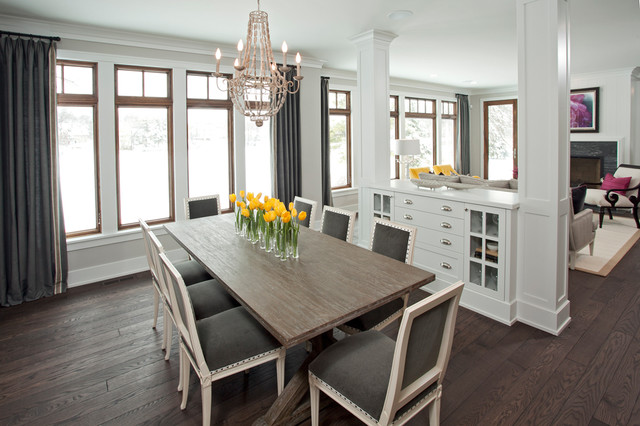 Ispirazione per una sala da pranzo tradizionale di medie dimensioni con pareti bianche, parquet scuro e nessun camino — Houzz