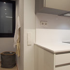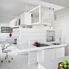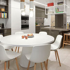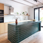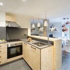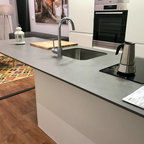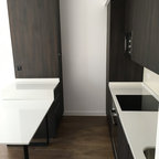 Idee per una cucina design di medie dimensioni con ante lisce, ante in legno scuro e isola — Houzz