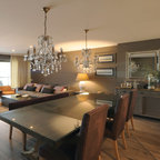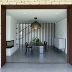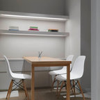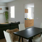 Immagine di una sala da pranzo aperta verso la cucina design di medie dimensioni con pareti bianche e nessun camino — Houzz