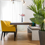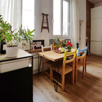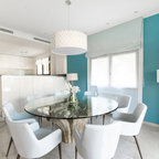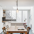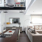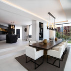 Ispirazione per una sala da pranzo aperta verso la cucina minimal di medie dimensioni con pareti bianche e nessun camino — Houzz