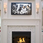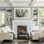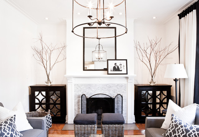 Foto di un soggiorno chic con cornice del camino piastrellata — Houzz