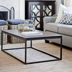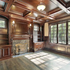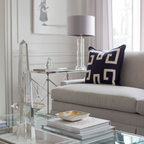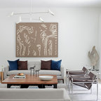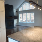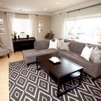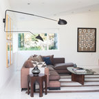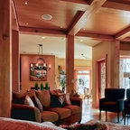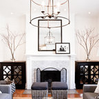 like the glass light fixture to ground the family room and make it look like one united space. would go with a square one though.