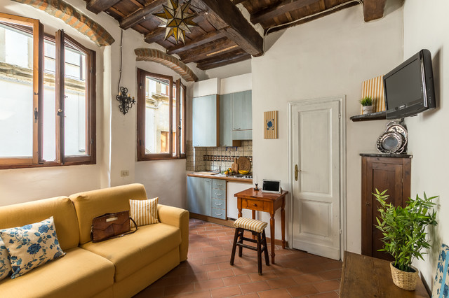 Ispirazione per un piccolo soggiorno mediterraneo con pavimento in terracotta e pavimento rosso — Houzz
