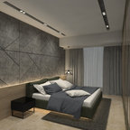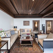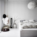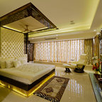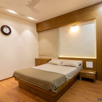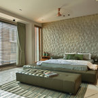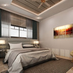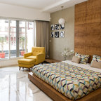 Esempio di una camera matrimoniale etnica con pareti beige, pavimento in legno massello medio e pavimento marrone — Houzz