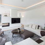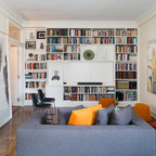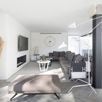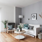 Immagine di un piccolo soggiorno nordico stile loft con pareti bianche, pavimento in laminato, nessun camino, nessuna TV e pavimento marrone — Houzz