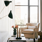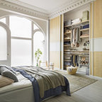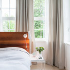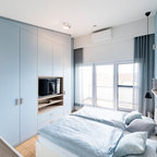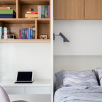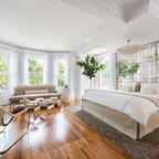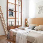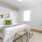 Idee per una piccola camera da letto nordica con pareti bianche, nessun camino, parquet chiaro e pavimento beige — Houzz