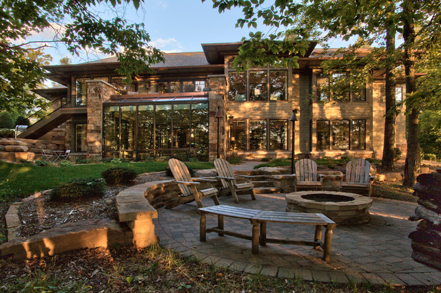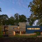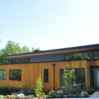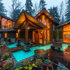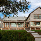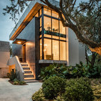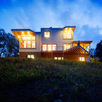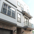 Idee per la facciata di una casa unifamiliare beige contemporanea a tre o più piani con tetto a capanna e copertura a scandole — Houzz