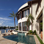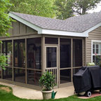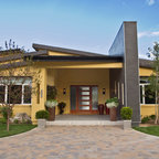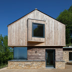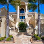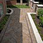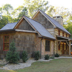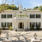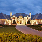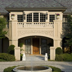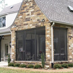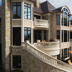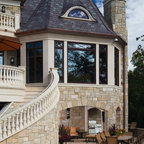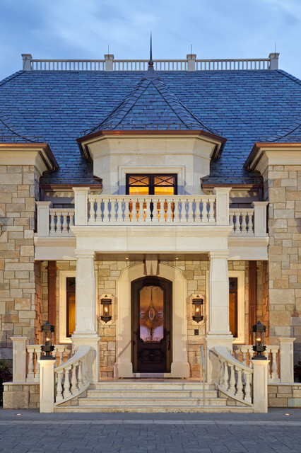 Foto della facciata di una casa classica con rivestimento in pietra — Houzz