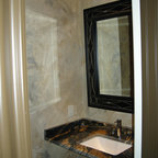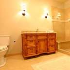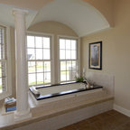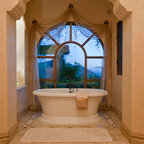Immagine di una grande stanza da bagno padronale classica con ante in stile shaker, ante bianche, vasca freestanding, piastrelle bianche, piastrelle in pietra, lavabo a consolle, pareti bianche e pavimento con piastrelle a mosaico — Houzz