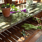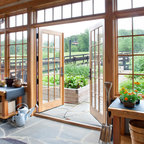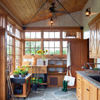 This 1919 bungalow was lovingly taken care of but just needed a few things to make it complete. The owner, an avid gardener wanted someplace to bring in plants during the winter months. This small addition accomplishes many things in one small footprint. This potting room, just off the dining room, doubles as a mudroom. Design by Meriwether Felt, Photos by Susan Gilmore