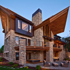 Ispirazione per la facciata di una casa ampia marrone moderna a tre o più piani con rivestimento in pietra — Houzz