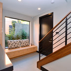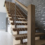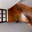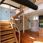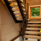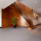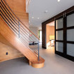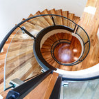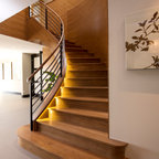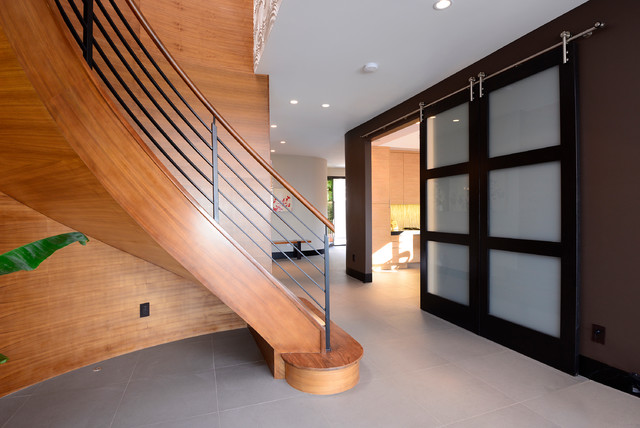 Immagine di una scala curva design di medie dimensioni con pedata in legno e alzata in legno — Houzz